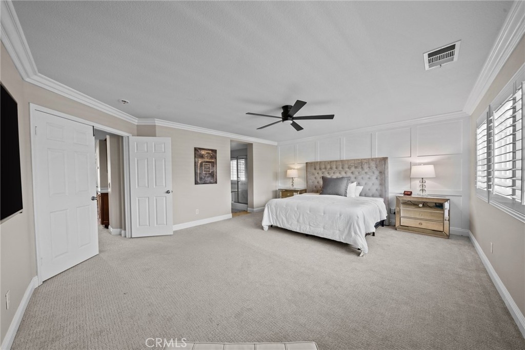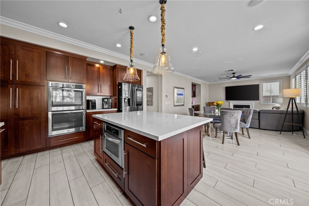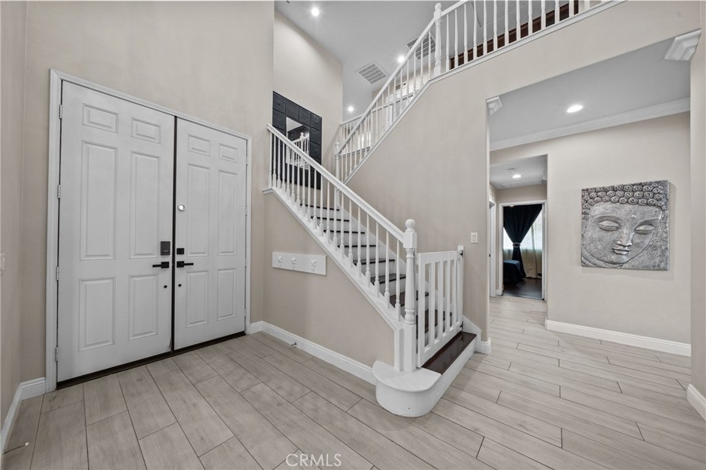 Welcome to this exquisite turnkey home with SOLAR (to be paid at the close of escrow), 2-BACKUP BATTERIES & NO HOA, in the heart of Murrieta. Boasting a host of desirable features, this property offers the perfect blend of comfort and style. As you enter you are greeted with an abundance of natural light and an elegant Zgallerie chandelier that exudes sophistication. With four bedrooms, three full baths, and a versatile loft with barn doors that can easily serve as a fifth bedroom, this home provides ample space. The home offers a bedroom and full bath on the main floor perfect for guest or in-law living. The updated kitchen is a chef's dream, featuring Cherrywood KraftsMaid cabinets with espresso stain, soft close hinges, luxurious Quartz countertops, Full Backsplash, and a suite of high-end appliances including a Whirpool Double Oven, 36-inch Stovetop, 36-inch Broan Range Hood, and a Kitchen Aid built-in microwave. The 30-inch Kohler under-mount sink adds both style and convenience. The kitchen is strategically positioned to face the living room, creating an inviting and seamless flow perfect for entertaining. The built-in bar addition with Magic Chef Wine Cooler and full backsplash further enhances the entertainment potential. You will find brand new ceiling fans throughout the home, as well as LED can lights, Plantation shutters, Smart Blinds with remote in the loft, 2 Nest Thermostats, ceiling speakers in the living room, kitchen & loft, built-in wall Amazon Echo connected to ceiling speakers, Wet Bar addition on 2nd floor with Magic Chef Wine Cooler. The main floor has tile flooring throughout offering durability and easy maintenance except the bedroom downstairs and stairs feature wood laminate flooring. The second floor of this stunning home features newer carpet adding comfort and warmth. The primary suite boasts an accent wall, a large walk-in closet, and an en suite bathroom with a tub and separate shower. The spacious backyard is an oasis for relaxation and entertainment. Enjoy the covered patio and fire pit area, perfect for gatherings and entertaining. The 3-car garage has been upgraded with epoxy flooring, overhead storage, and has 4 Husky 24- 24-gauge steel freestanding garage cabinets for added organization. As if all this wasn't enough, the home is within walking distance of a park, Monte Vista Elementary School, and just minutes away from shopping, Temecula Wine Country, and so much more. Don't miss your chance to call it yours!