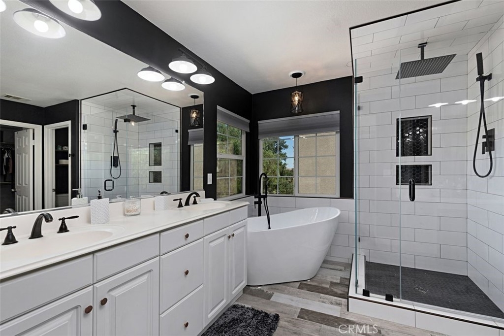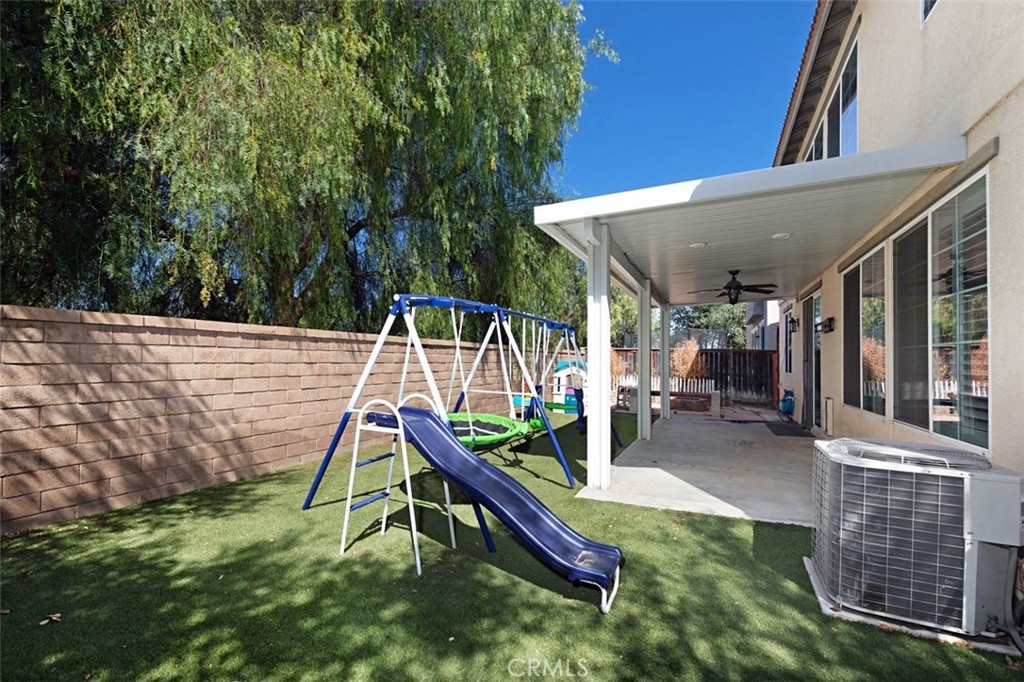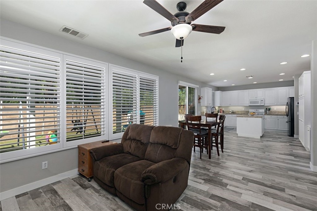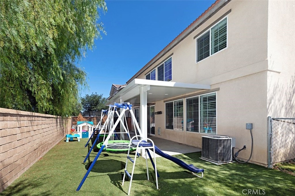 This beautiful home sits on the corner of a quiet cul-de-sac in the Northstar Ranch community and wonderful city of Murrieta. Offering a spacious and open layout, this home boasts 4 bedrooms and 3 full bathrooms with over 2,400 square feet of living space. As you enter the home, you can appreciate the expansive formal living room and formal dining area with large windows creating a light and bright space. Continuing on, you will find the cozy family room with a mantled fireplace that opens up to the kitchen with views and direct access to the quaint backyard. The kitchen offers a center island, granite countertops, and plenty of white cabinetry and storage. The main floor bedroom and full bathroom are perfect for overnight guests towards the front of the home for privacy. Completing the downstairs is the laundry room with direct access to your large 4-car tandem garage. Upstairs, you will find the master suite, 2 large secondary rooms and the hallway bathroom with dual sinks and a shower in tub combination. The spacious master bedroom is the ultimate retreat with an ensuite bathroom complete with a dual sink vanity, a walk-in shower with subway tile, a separate soaking tub, an additional vanity area, and a deep and spacious walk-in closet. The drought resistant backyard offers a covered patio, artificial grass, a built-in fire pit and plenty of space for family BBQs and parties. Enjoy top schools minutes away from the award-winning Monte Vista elementary school and a short drive to McElhinney middle and Vista Murrieta high school.