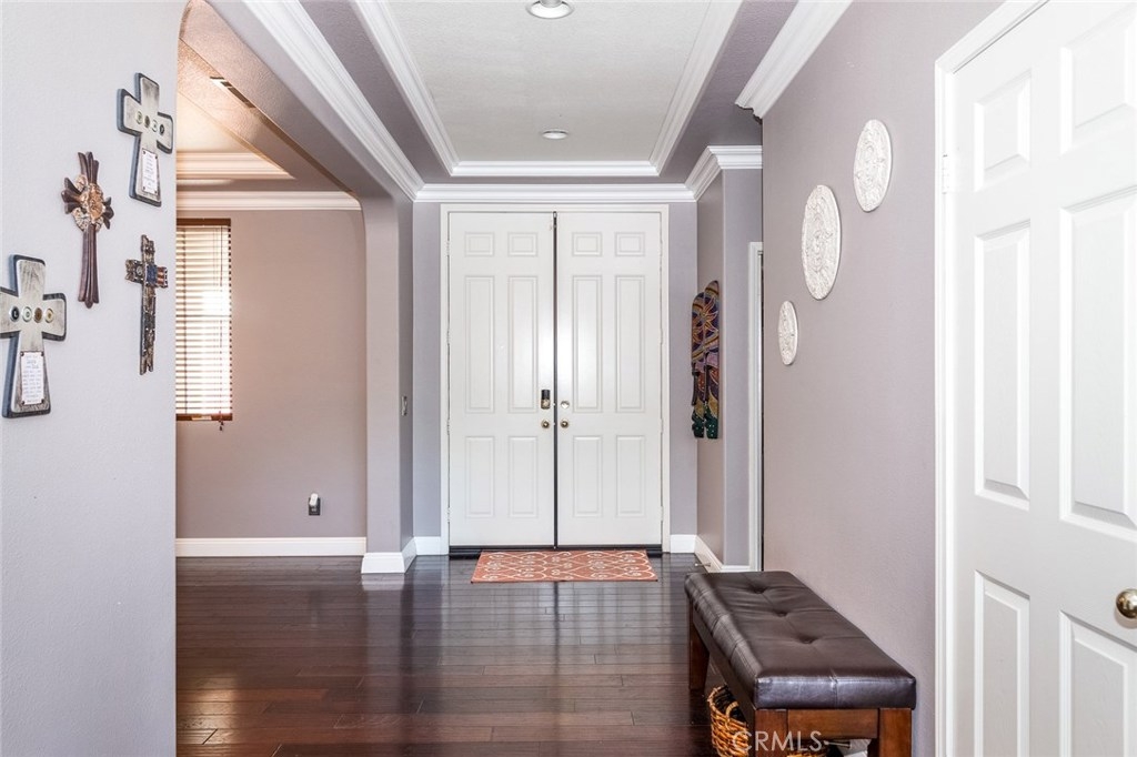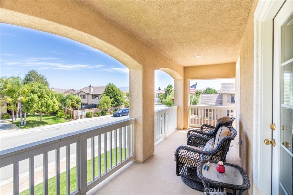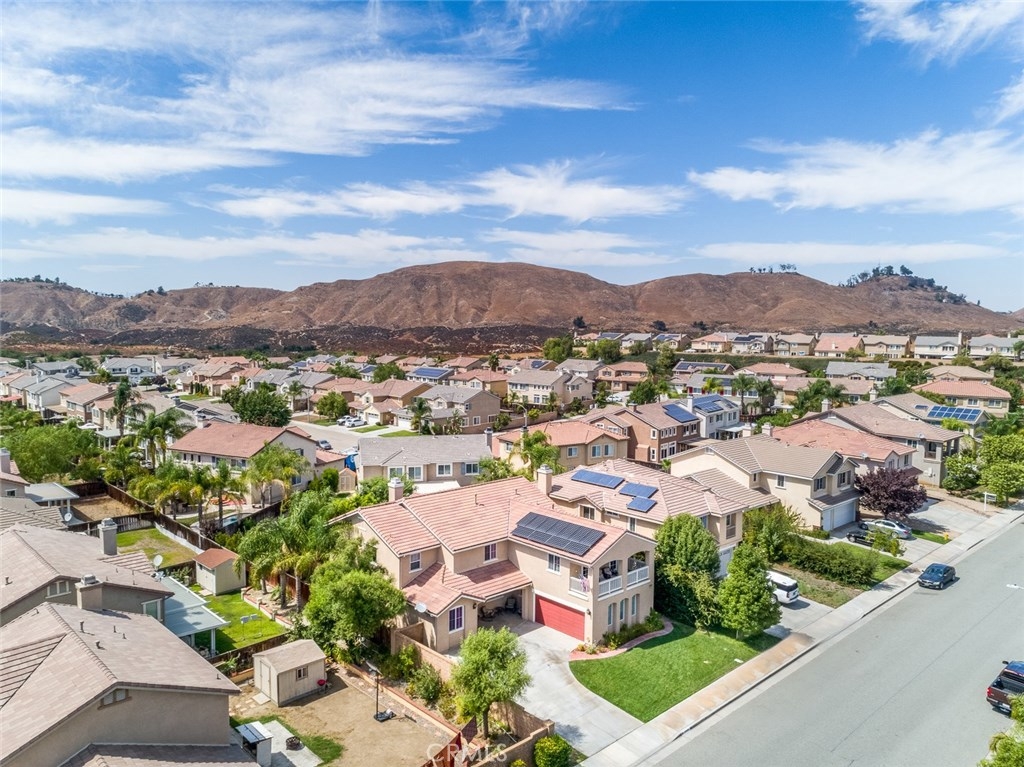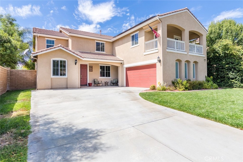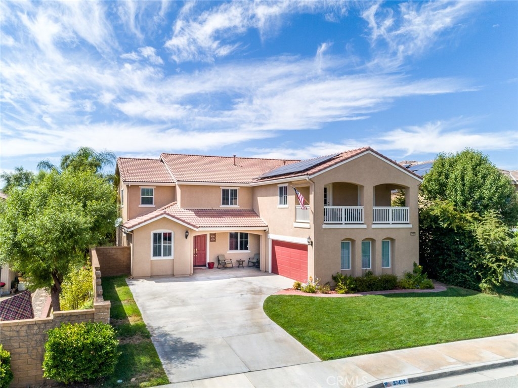 Your dream home awaits you! Welcome to a luxurious state of the art smart-home with solar. This home includes paid off solar, smart door lock, doorbell, cameras, and Nest thermostats. Imagine walking in to beautiful hardwood floors covering most of the first level, looking up to luxurious crown molding throughout, bedroom and full bath to the left, dining room to the right, keep straight passing the stairs to the formal living room, bear right around the bend and the room opens up to a large family room and a kitchen appointed with granite, tile floor, double ovens and large island. From the kitchen you have access to the dining room, laundry room with a sink, and oversized two-car garage. Journey upstairs to find a built-in desk study area, and walk down the hallway to enter a generously sized master bedroom and bath with walk-in closets and Jacuzzi tub to unwind after a long day. Continuing down the hallway you will see two additional bedrooms on opposite sides with a full bath. The hallway opens up to a huge loft that is perfect to use as an entertainment, game, or kids playroom. French doors off the loft lead to a balcony that is perfect when paired with the morning cup of coffee to watch the hot air balloons or evening wine to enjoy the mountain views. Combine this with Murrieta’s highly rated school district, a short distance from entertainment and shopping in Temecula Wine Country and the Promenade Mall and you have a winner for the whole family.