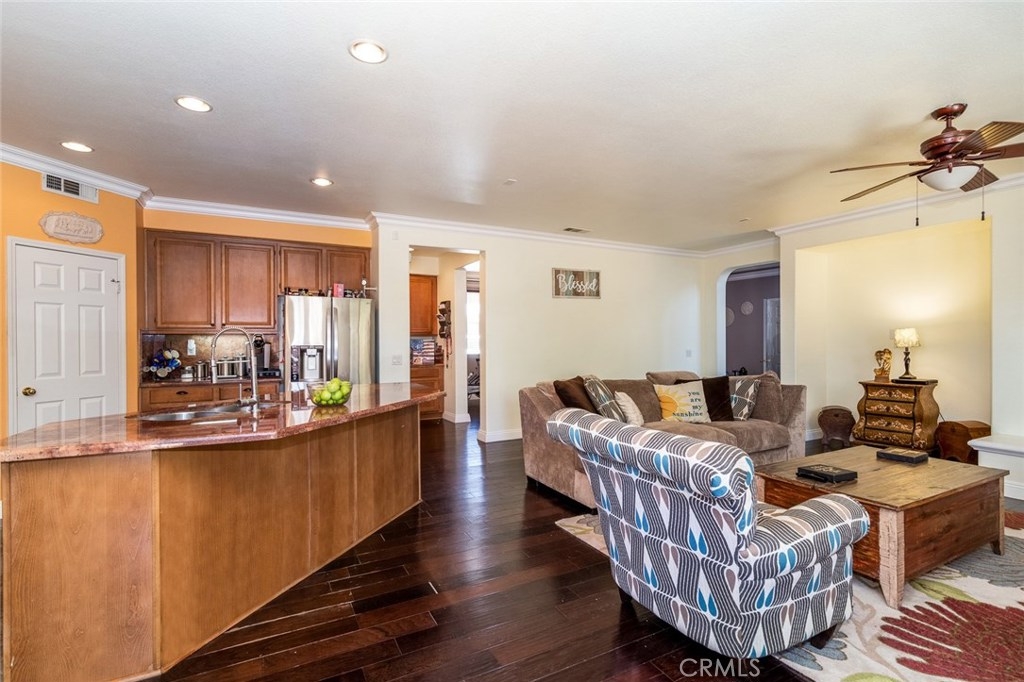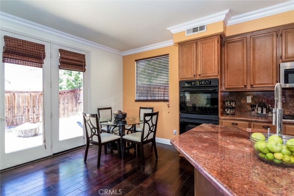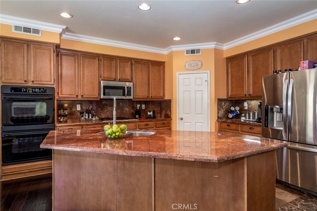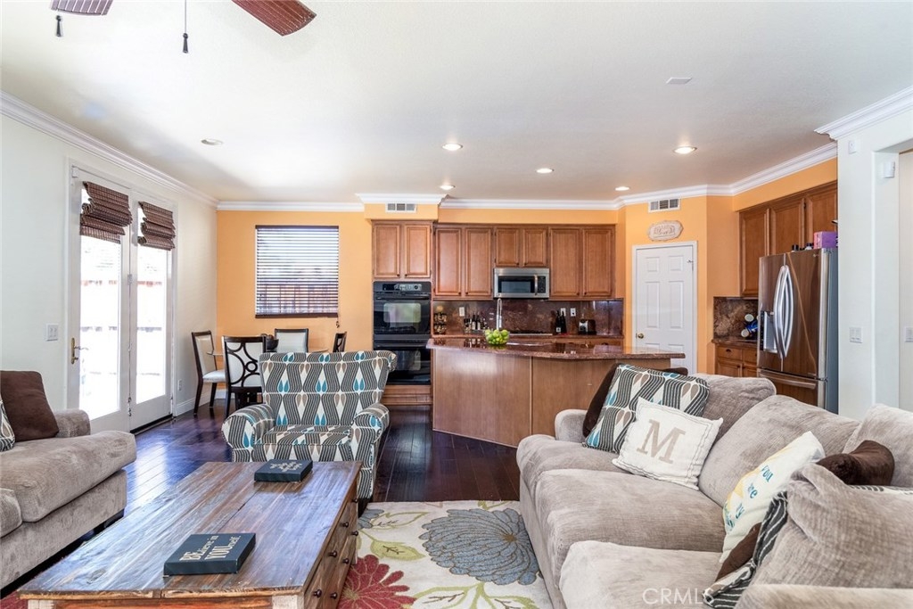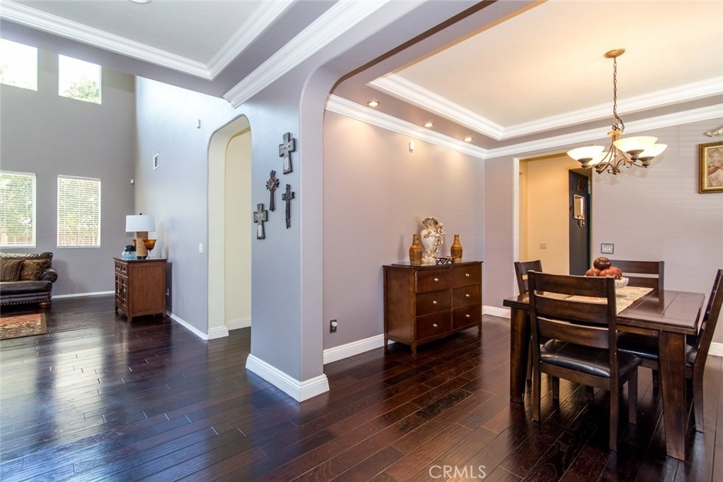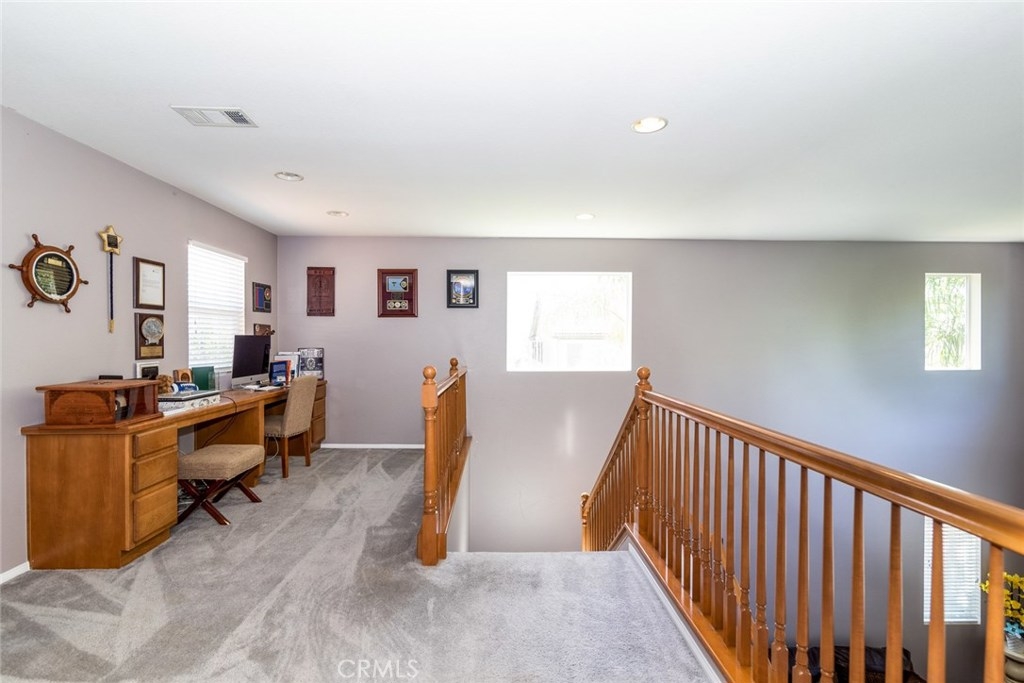 Your dream home awaits you! Welcome to a luxurious state of the art smart-home with solar. This home includes paid off solar, smart door lock, doorbell, cameras, and Nest thermostats. Imagine walking in to beautiful hardwood floors covering most of the first level, looking up to luxurious crown molding throughout, bedroom and full bath to the left, dining room to the right, keep straight passing the stairs to the formal living room, bear right around the bend and the room opens up to a large family room and a kitchen appointed with granite, tile floor, double ovens and large island. From the kitchen you have access to the dining room, laundry room with a sink, and oversized two-car garage. Journey upstairs to find a built-in desk study area, and walk down the hallway to enter a generously sized master bedroom and bath with walk-in closets and Jacuzzi tub to unwind after a long day. Continuing down the hallway you will see two additional bedrooms on opposite sides with a full bath. The hallway opens up to a huge loft that is perfect to use as an entertainment, game, or kids playroom. French doors off the loft lead to a balcony that is perfect when paired with the morning cup of coffee to watch the hot air balloons or evening wine to enjoy the mountain views. Combine this with Murrieta’s highly rated school district, a short distance from entertainment and shopping in Temecula Wine Country and the Promenade Mall and you have a winner for the whole family.
